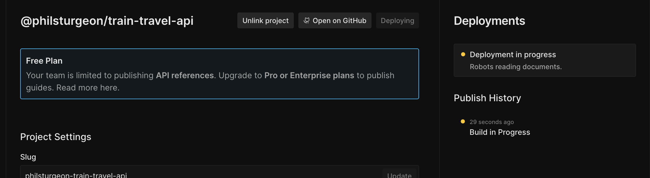 Click the deployment to see find the projects docs URL, something like https://name-of-your-api.apidocumentation.com.