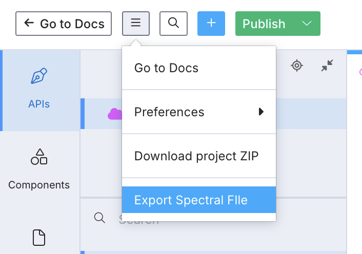 To migrate any custom Spectral rulesets hosted in Stoplight Platform, head to Studio, and click Export Spectral File.